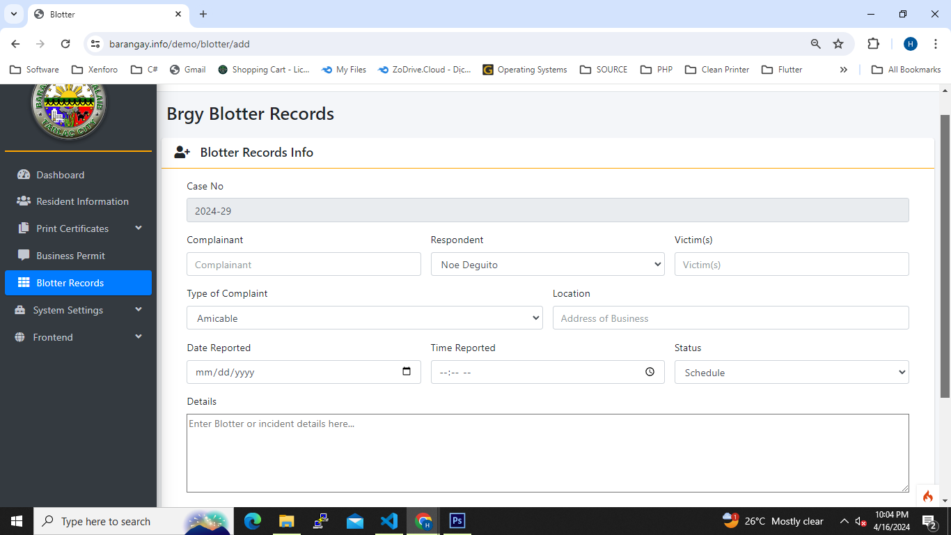 ADD BLOTTER RECORD
